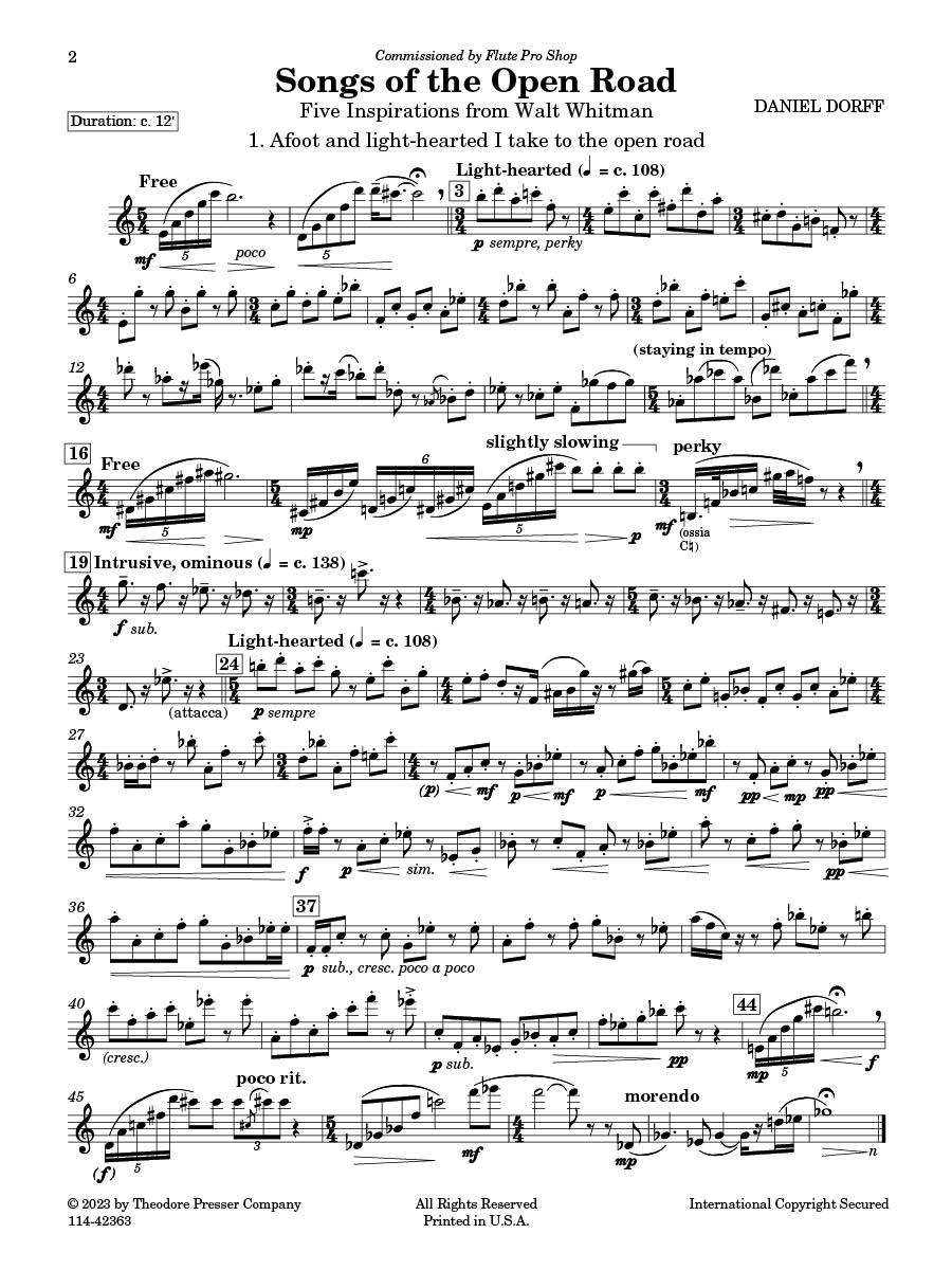 Whitman’s epic “Song of the Open Road” is an inspiring metaphor encouraging us to find and explore our own paths, free of anchors or artificial boundaries. Dorff uses 5 brief passages from the poem as movement titles, setting the stage for a suite of sometimes-edgy soliloquies in which the music (and the flutist) explores these open roads.
